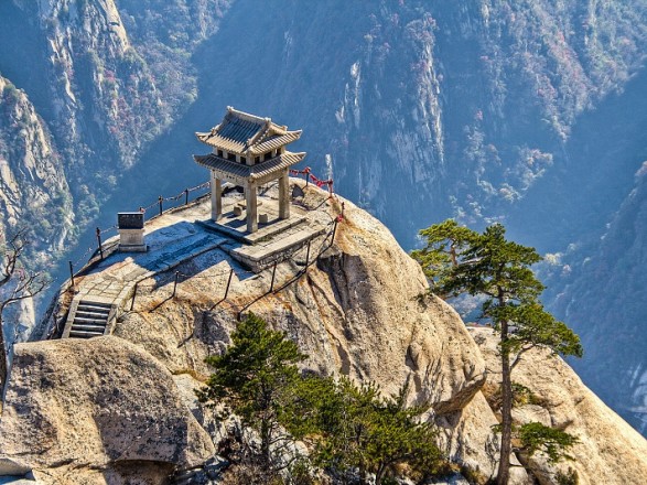 Хуашань возвышаются над северо-западными равнинами, известные как «самые крутые горы в мире».