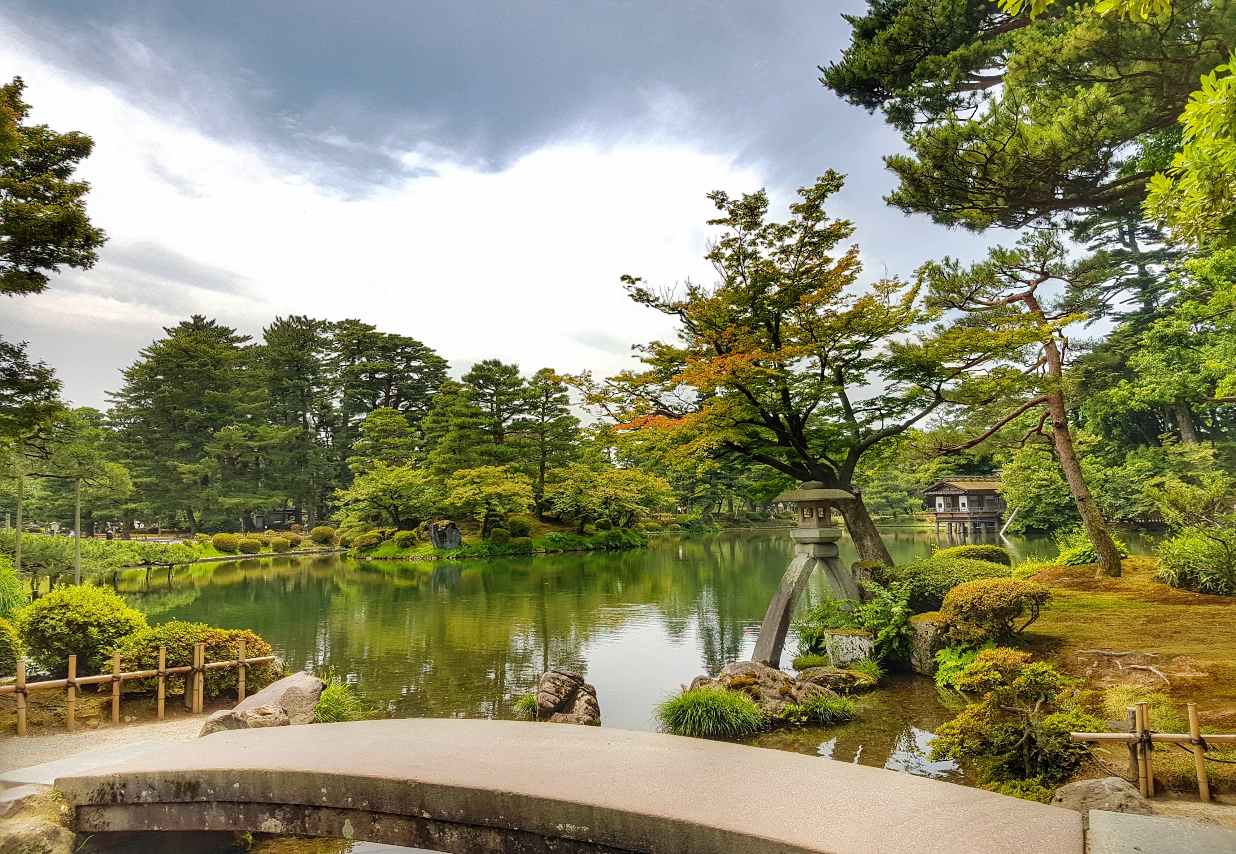 Сад Кенрокуэн в Канадзава считается одним из трех самых красивых пейзажных садов Японии. Это подлинный шедевр японского садово-паркового искусства. Сад был заложен в 1676 году как внешний сад замка, в 1874 году был открыт для публичного посещения. Название Кенрокуэн означает «сад, имеющий шесть достоинств» - обширность, тихая уединенность, искусность, дух старины, обилие водоемов и прекрасные виды. Наряду с садом Кайраку в Мито и Кенроку в Окаяма - сад Кенрокуэн вход в тройку самых красивых садов Японии. Независимо от того, в какой сезон Вы едете в Канадзаву, посещение сада Кенрокуэн должно обязательно войти в вашу программу. Расположенный в сердце Канадзавы, и ценится туристами со всего мира как самый красивый пейзажный сад, который зачаровывает своими сезонными ароматами и пейзажами, и восторгает своими масштабами. В саду высажено более чем 8750 деревьев и 183 видов разнообразный растений. Весной Вы войдёте в главные ворота Кенрокуэн и пройдёте через аллею деревьев сакура, где вас окутает нежным снегопадом мягко опадающие розово-белые лепестки. Летом вас встретит благоухающая растительность, где ирисы, склонили свои головки к воде, это волшебное место станет желанным местом отдыха от суматохи и жары. Осенью пылающие кленовые листья заставят вас остановиться и отдаться чувствам вдохновения. Сад зимой, это незабываемый пейзаж: сосны окутаны верёвками, подобно вигваму, чтобы защитить их от снега, а сам сад мирно дремлет под белым одеялом.