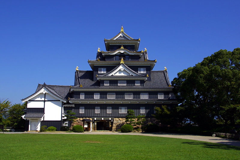 Первые постройки Замка Окаяма, также известного как \"Замок Ворона\" из-за его черной внешности, появились в 14 веке. Первые письменные упоминания о замке, который тогда носил название Исияма и принадлежал Кадзува Кодзики, встречаются в исторических записях «Военная хроника Бидзэн». В эпоху Сэнгоку замок Исияма играл важную роль в обороне провинций Бидзэн и Мимасака, а возникший вокруг замка город был процветающим портовым центром. Новая страница в истории замка была написана в конце 16 века, когда правителем провинции стал клан Укита, по инициативе которого началась постройка нового замка, постройки которого мы видим и сейчас.