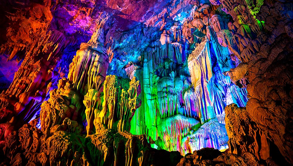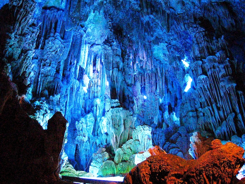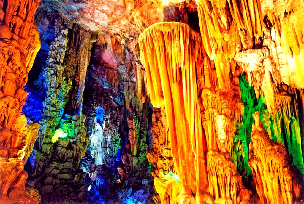 Карстові печери тростинної флейти (глибина 200м з багатьма сталактитами і сталагмітами)