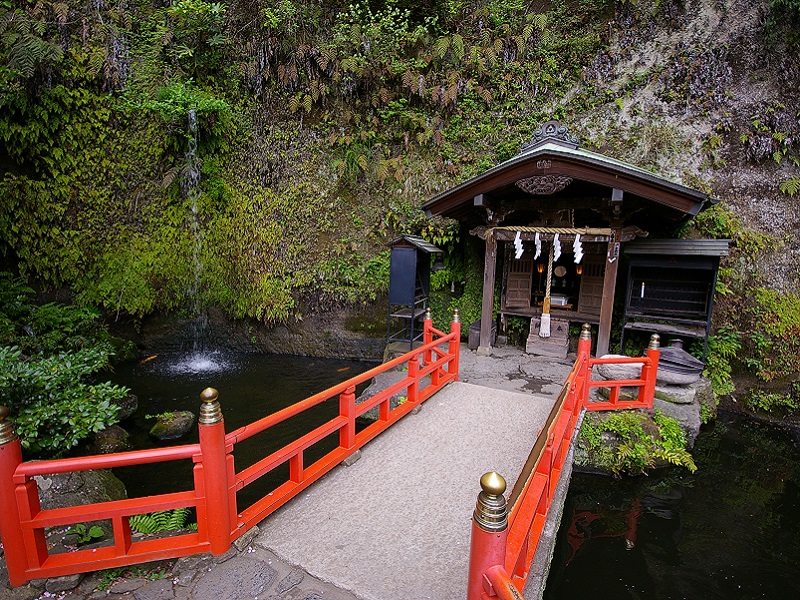 На территории храма расположено несколько отдельных святилищ, посвящённых разным богам. В верхнем почитаются Семь Богов Счастья, приносящие удачу, а в нижнем – духи воды. Из-за перепадов рельефа здания находятся на разной высоте, и соединены лестницами и переходами, что придаёт территории комплекса особую живописность. Главная достопримечательность – пещера источника, где можно омыть деньги в водах ручья. Пяти-йеновые монетки с отверстием посередине, побывавшие в храме Бентен, станут отличным сувениром из вашей поездки.